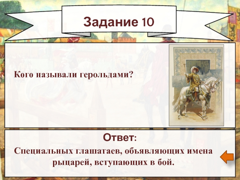 Специальных глашатаев, объявляющих имена рыцарей, вступающих в бой.
