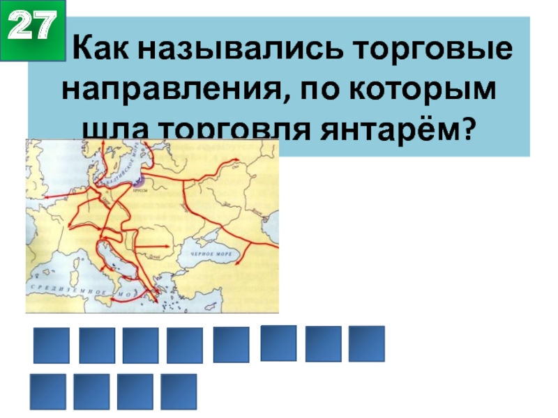 Слайд 30 Как назывались торговые направления, по которым шла торговля янтарём?