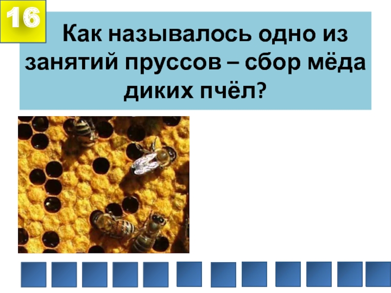 Слайд 19 Как называлось одно из занятий пруссов – сбор мёда диких