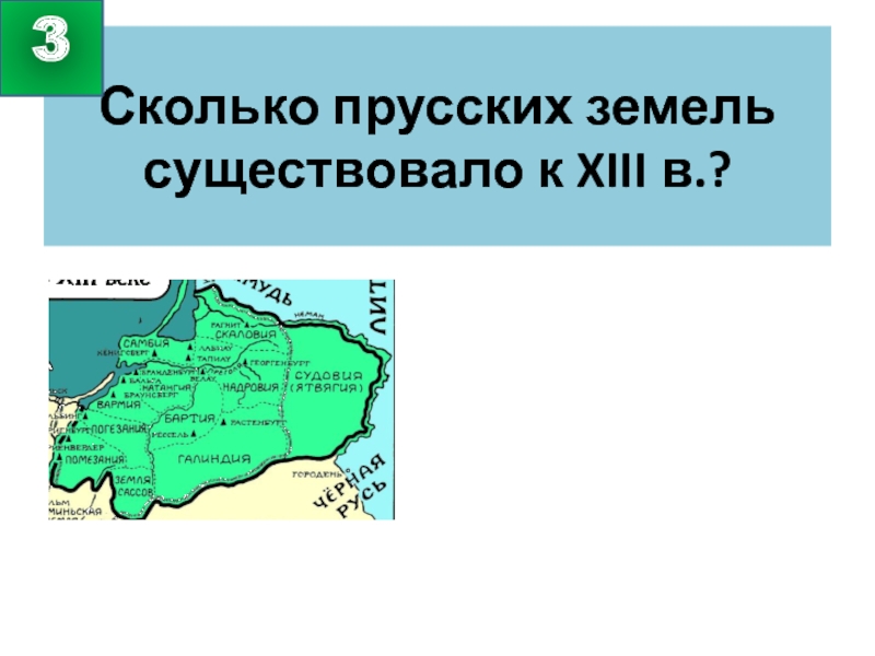 Слайд 6Сколько прусских земель существовало к XIII в.?