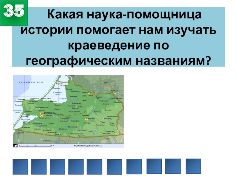 Какая наука-помощница истории помогает нам изучать краеведение по географическим названиям?35