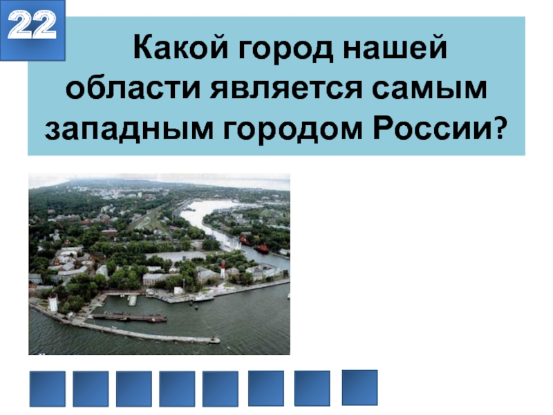 Слайд 25 Какой город нашей области является самым западным городом России?