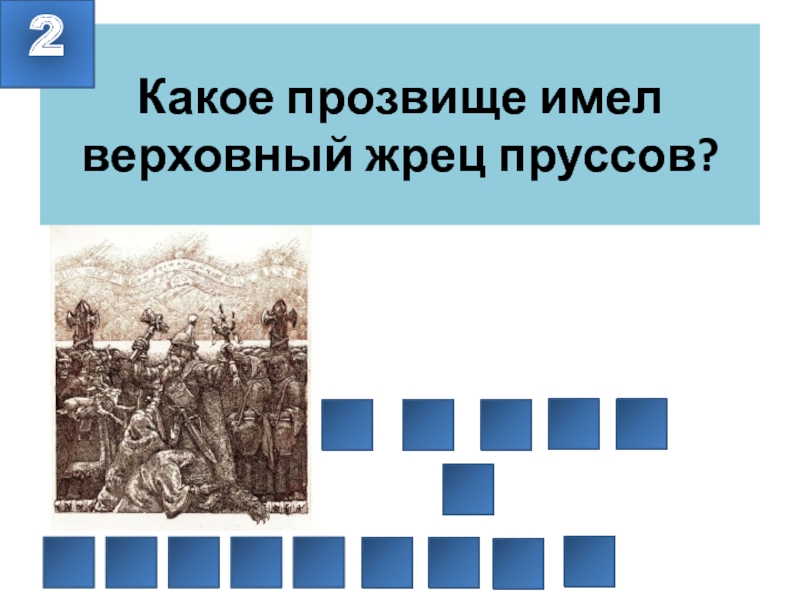 Слайд 5Какое прозвище имел верховный жрец пруссов?