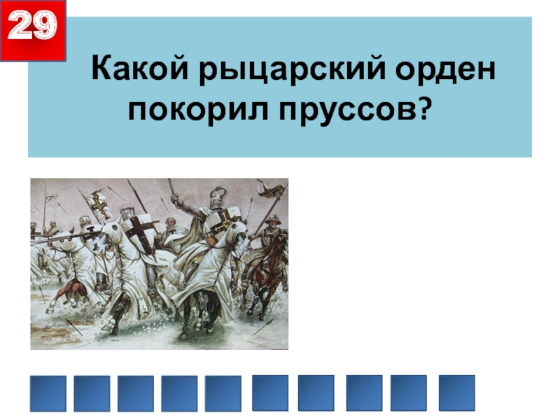 Слайд 32 Какой рыцарский орден покорил пруссов?