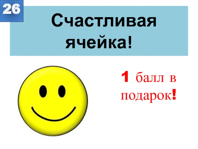Счастливая ячейка!1 балл в подарок!Продолжить игру21