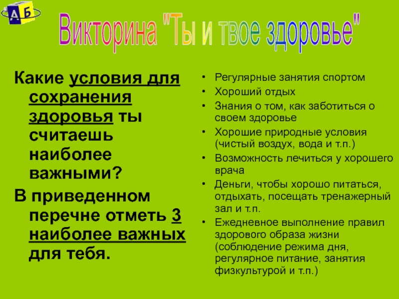 приведенном перечне отметь 3 наиболее важных для тебя.