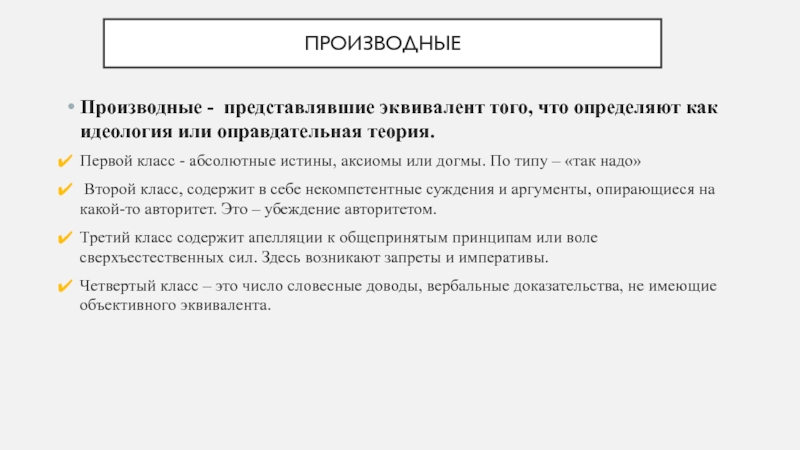 Производные - представлявшие эквивалент того, что определяют как идеология или