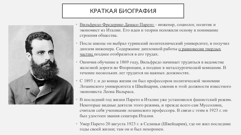 Вильфредо Фредерико Дамасо Парето – инженер, социолог, политик