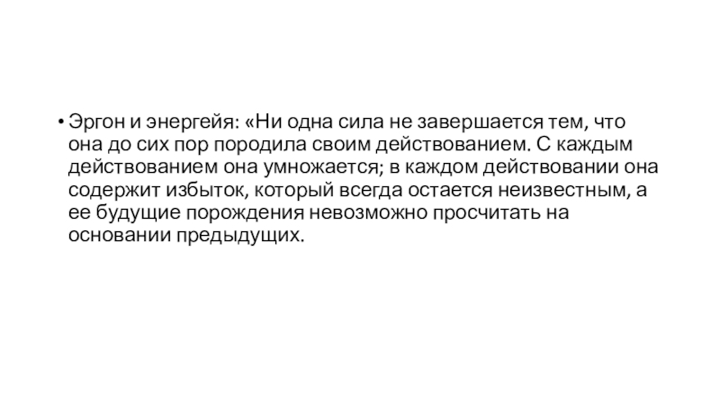 Слайд 35Эргон и энергейя: «Ни одна сила не завершается тем, что