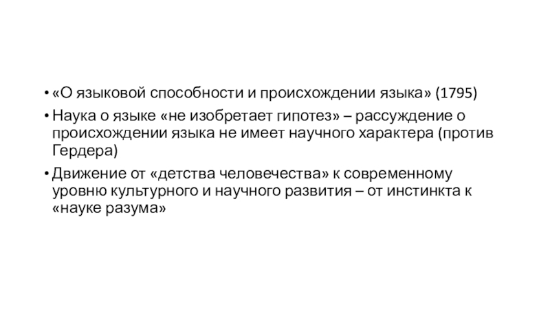 Слайд 17«О языковой способности и происхождении языка» (1795)