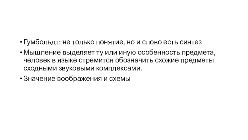 Слайд 12Гумбольдт: не только понятие, но и слово есть синтез