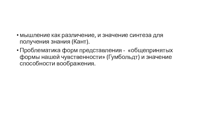 Слайд 10мышление как различение, и значение синтеза для получения знания (Кант).