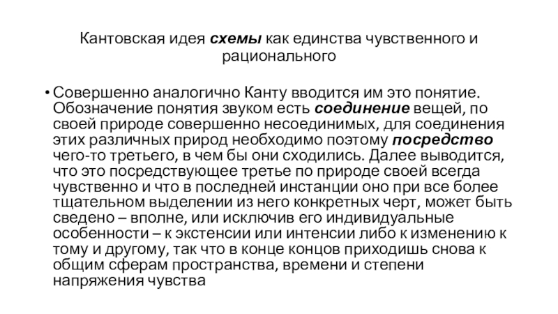 Слайд 9Кантовская идея схемы как единства чувственного и рационального