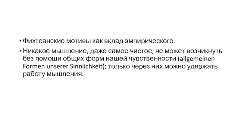 Слайд 14Фихтеанские мотивы как вклад эмпирического.