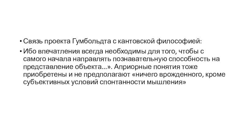Слайд 25Связь проекта Гумбольдта с кантовской философией: