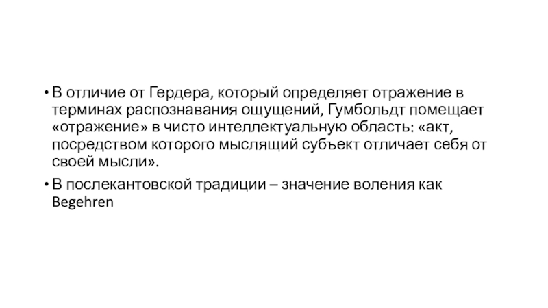 Слайд 20В отличие от Гердера, который определяет отражение в терминах распознавания