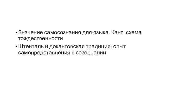 Слайд 24Значение самосознания для языка. Кант: схема тождественности