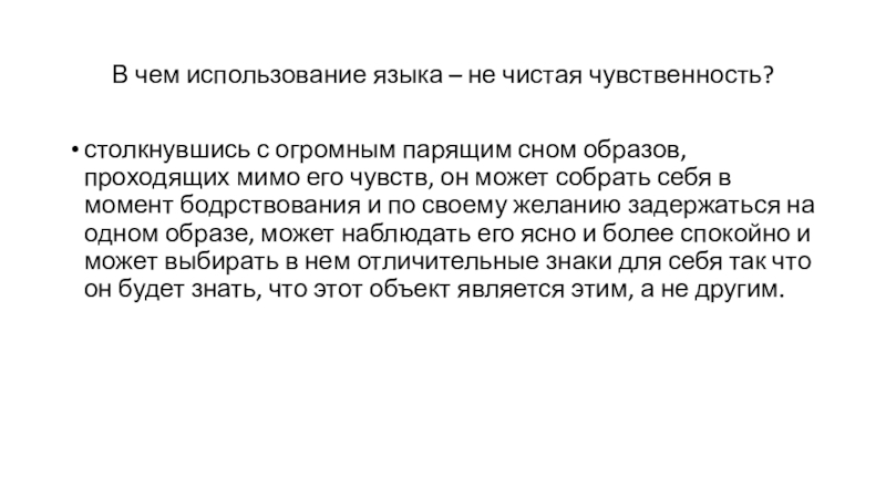 себя в момент бодрствования и по своему желанию задержаться на одном образе, может наблюдать его ясно и более спокойно и может выбирать в нем отличительные знаки для себя так что он будет знать, что этот объект является этим, а не другим.