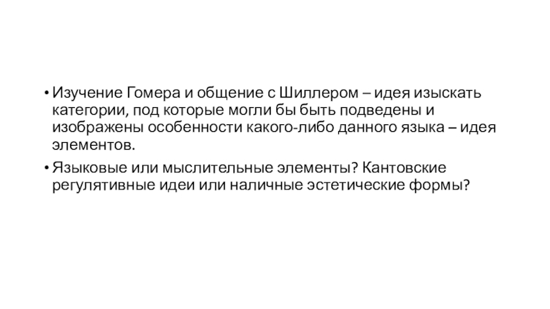 Слайд 6Изучение Гомера и общение с Шиллером – идея изыскать категории,