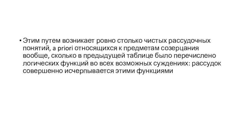 Слайд 31Этим путем возникает ровно столько чистых рассудочных понятий, a priori