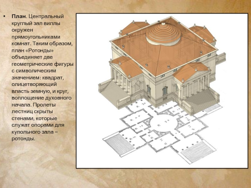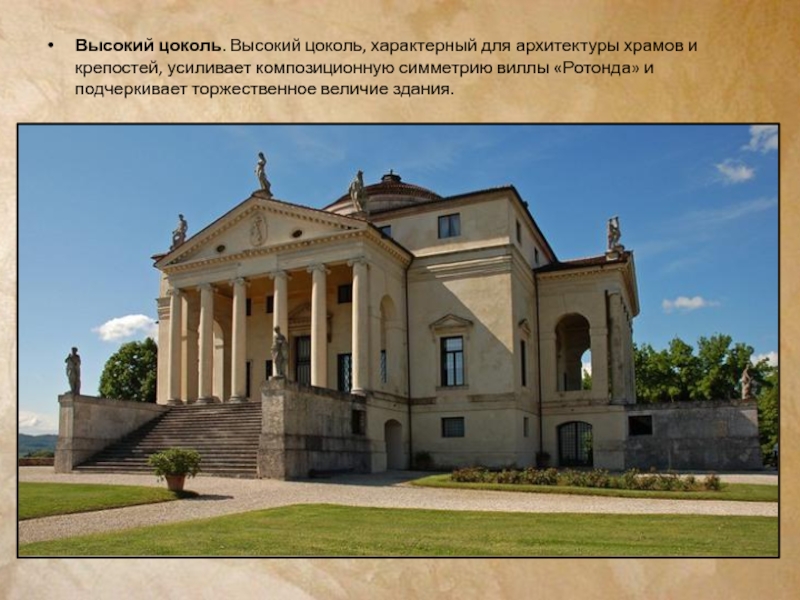 усиливает композиционную симметрию виллы «Ротонда» и подчеркивает торжественное величие здания.