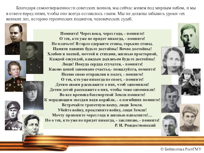 Какою ценой завоевано счастье,- пожалуйста, помните!
