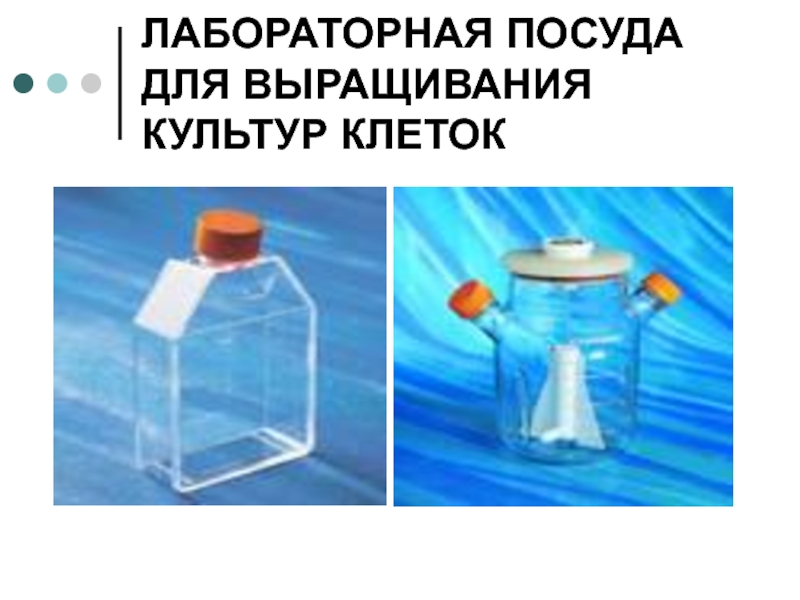 Слайд 44ЛАБОРАТОРНАЯ ПОСУДА ДЛЯ ВЫРАЩИВАНИЯ КУЛЬТУР КЛЕТОК