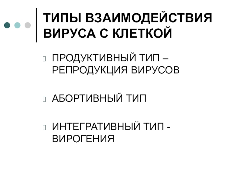 Слайд 27ТИПЫ ВЗАИМОДЕЙСТВИЯ ВИРУСА С КЛЕТКОЙ
