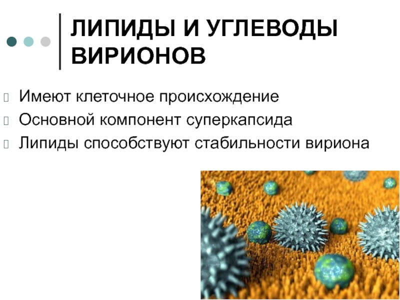 Слайд 21ЛИПИДЫ И УГЛЕВОДЫ ВИРИОНОВ