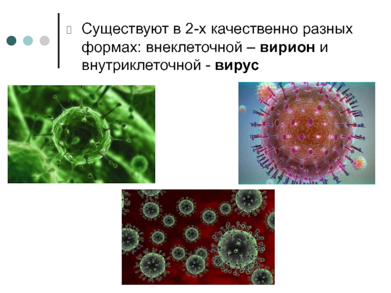 Слайд 8Существуют в 2-х качественно разных формах: внеклеточной – вирион и