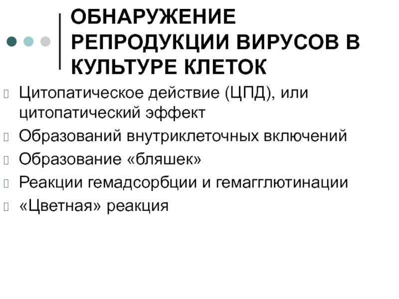 Слайд 47ОБНАРУЖЕНИЕ РЕПРОДУКЦИИ ВИРУСОВ В КУЛЬТУРЕ КЛЕТОК
