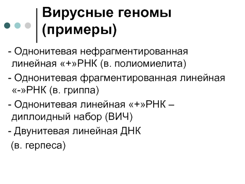 Вирусные РНК – однонитевые или двунитевые, фрагментированные или цельные, линейные
