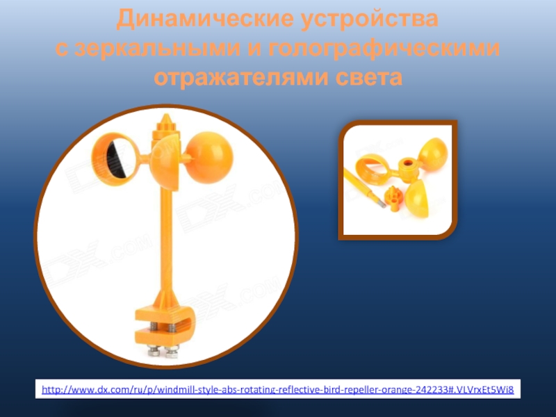 Принцип действия основан на природной боязни птиц ярких, мерцающих и переливающихся цветных предметов.