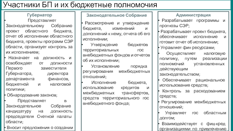 Формируют и утверждают перечень подвед им адм доходов областного, местного бюджетов, бюджета территориального ФОМС;