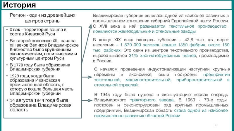 Владимирская губерния являлась одной из наиболее развитых в промышленном отношении губерний Европейской части России. С XVII века в ней развивается текстильное производство, появляются железодельные и стекольные заводы