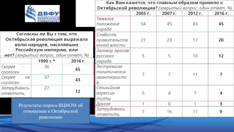 Цель работы - выявление важнейших изменений в политике памяти постсоветской России и определение основных тенденций в отношении российских граждан к событиям 1917г.