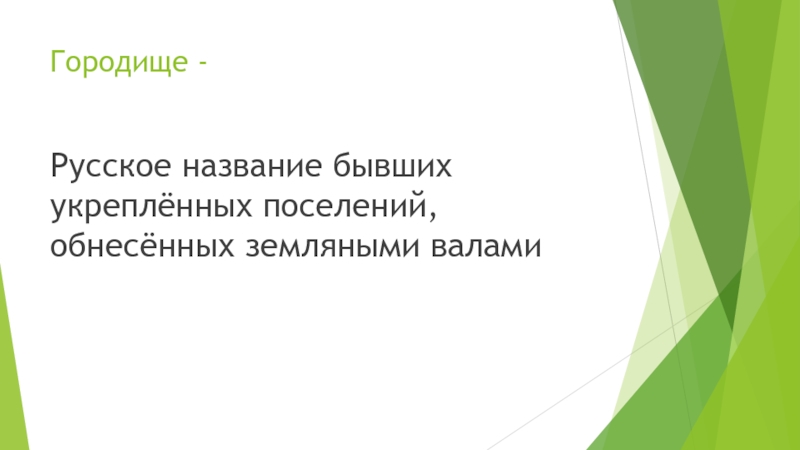 Городище - Русское название бывших укреплённых поселений, обнесённых земляными валами