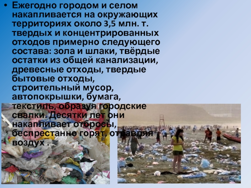 Слайд 8Ежегодно городом и селом накапливается на окружающих территориях около 3,5