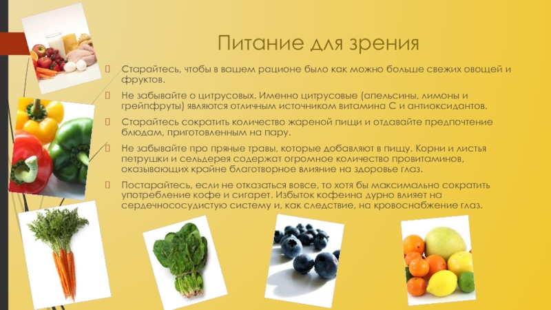 Слайд 1Влияние питания и природных факторов на состояние зрения ребенка