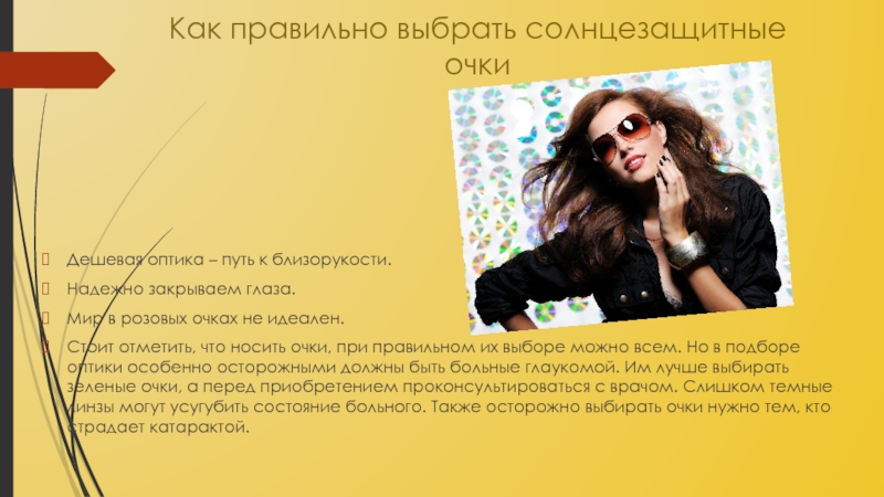 Слайд 11Как правильно выбрать солнцезащитные очки
