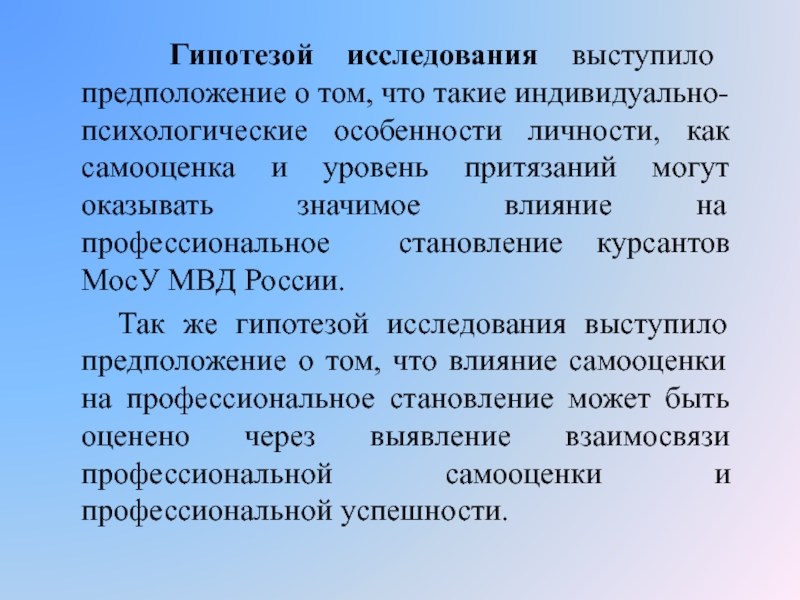 учетом специфики обучения в образовательных организациях МВД России.самооценка личности как фактор профессионального становления курсантов образовательных организаций МВД России.