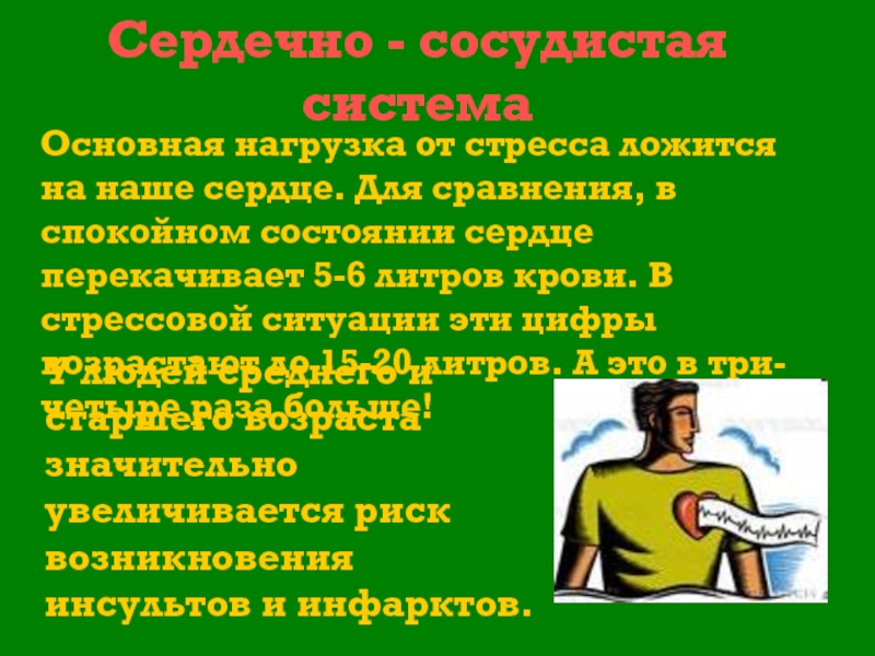 У людей среднего и старшего возраста значительно увеличивается риск возникновения инсультов и инфарктов.