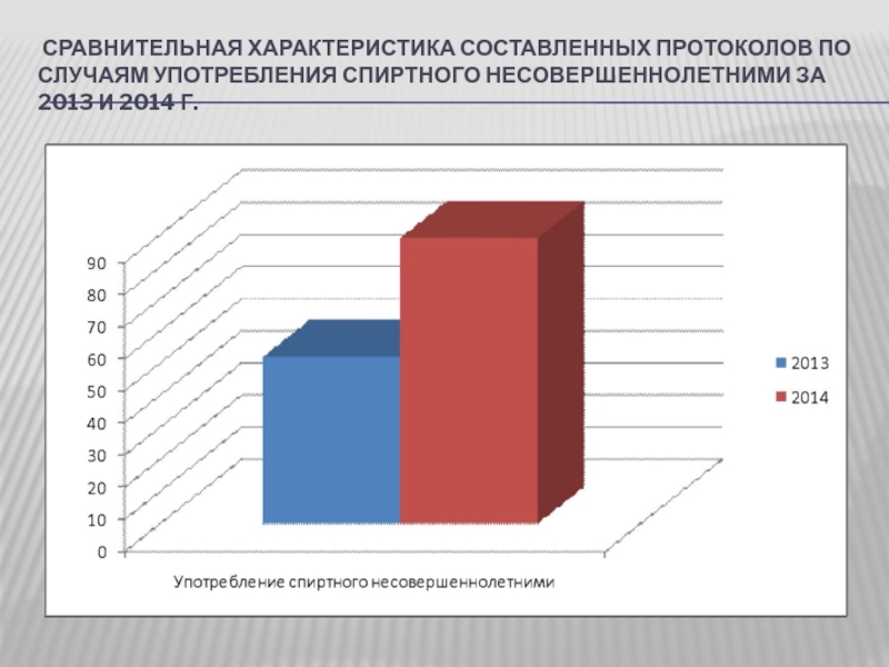 СРАВНИТЕЛЬНАЯ ХАРАКТЕРИСТИКА СОСТАВЛЕННЫХ ПРОТОКОЛОВ ПО СЛУЧАЯМ УПОТРЕБЛЕНИЯ СПИРТНОГО НЕСОВЕРШЕННОЛЕТНИМИ ЗА 2013 И 2014 Г.