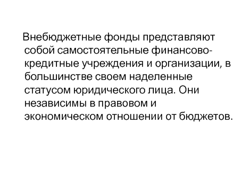 Внебюджетные фонды представляют собой самостоятельные финансово-кредитные