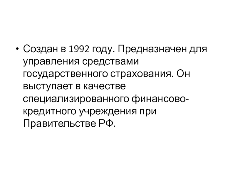 Создан в 1992 году. Предназначен для управления средствами государственного страхования.