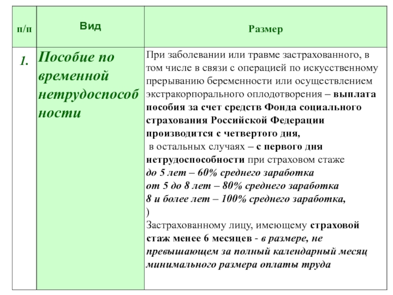 обеспечение гарантированных государством пособий по временной нетрудоспособности,