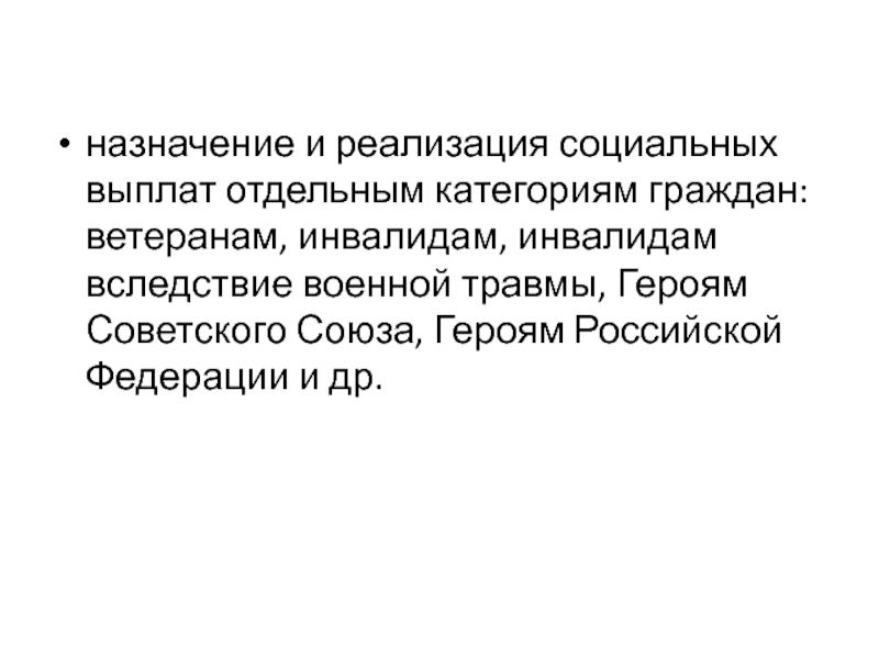 назначение и реализация социальных выплат отдельным категориям граждан: ветеранам, инвалидам,