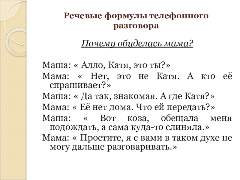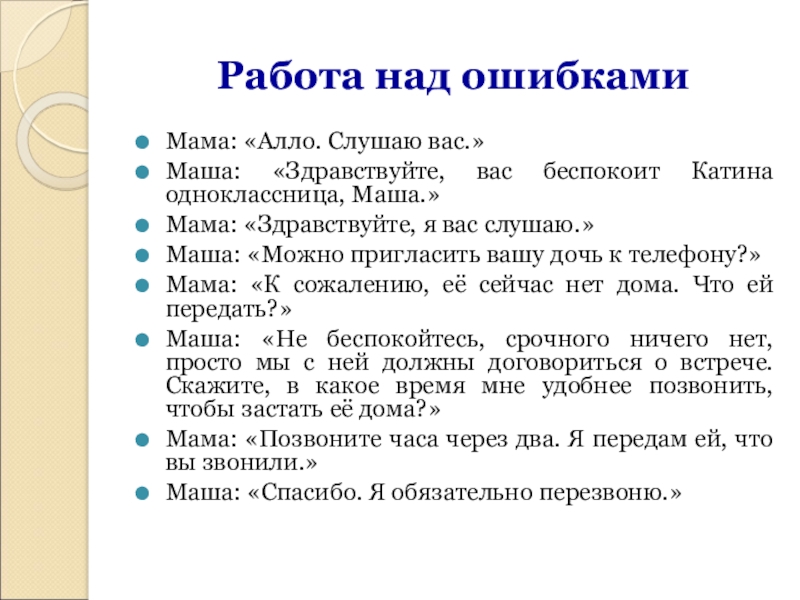 Мама: «Позвоните часа через два. Я передам ей, что вы звонили.»