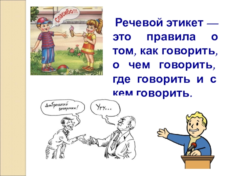 Слайд 6 Речевой этикет — это правила о том, как говорить, о