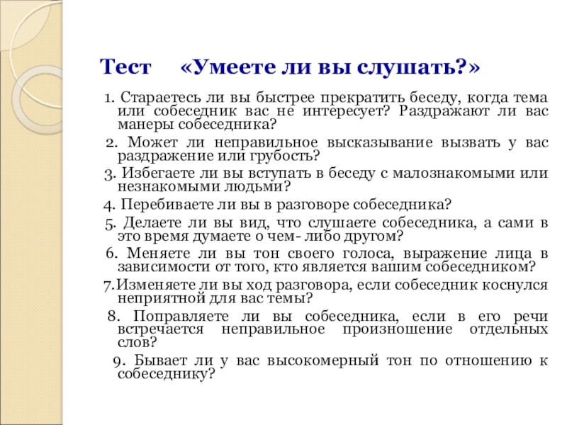 9. Бывает ли у вас высокомерный тон по отношению к собеседнику?